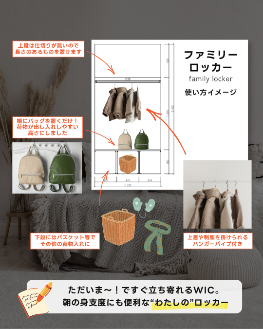 玄関近くに「ファミリーロッカー」を設けました