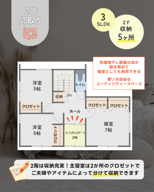 パントリーや土間収納など、