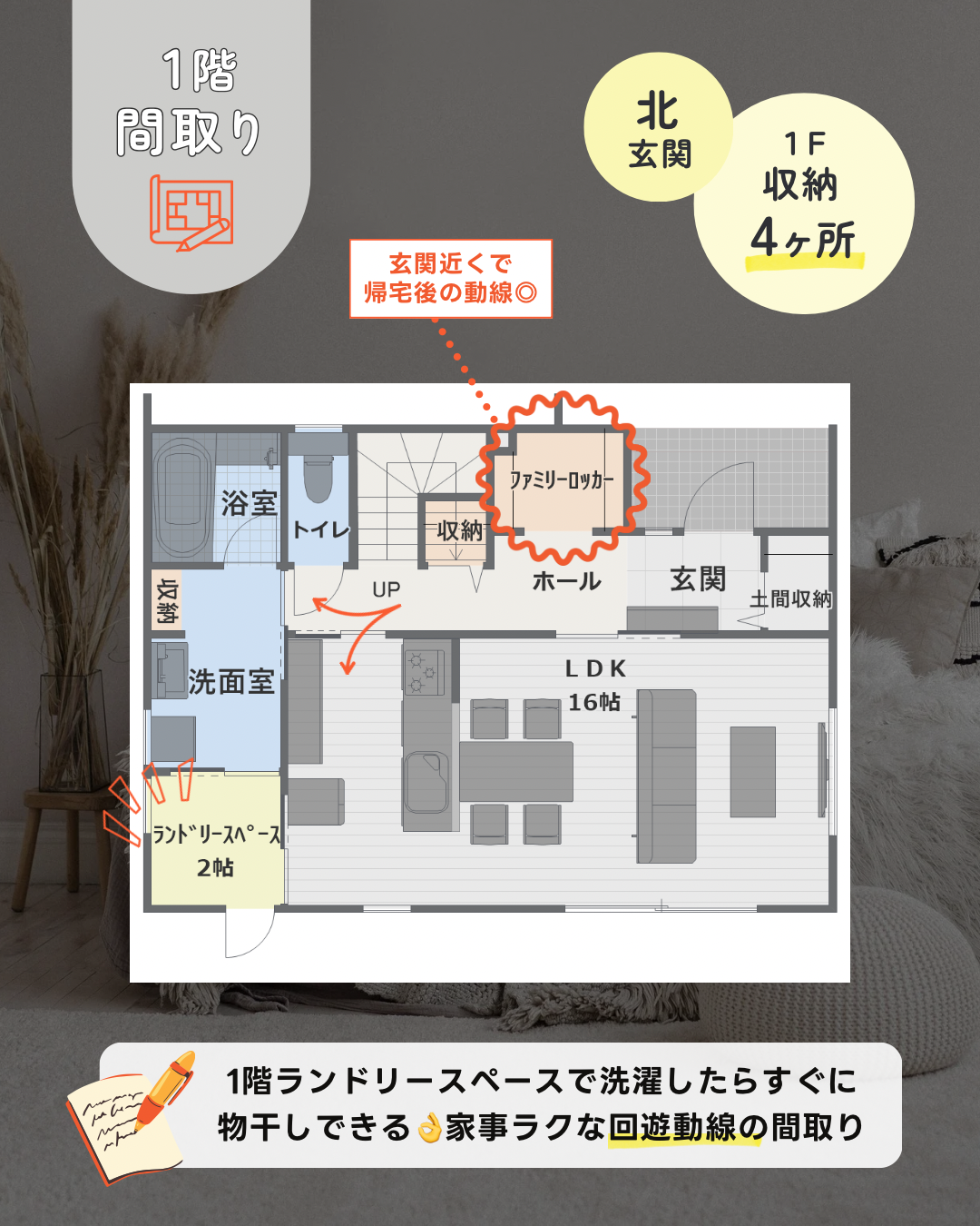 1階にランドリールーム&ファミクロ付き